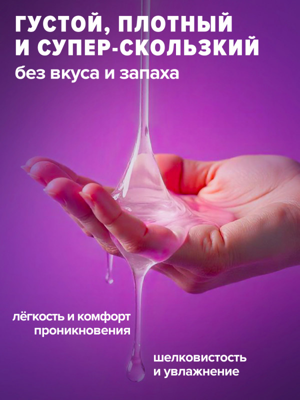 Гель обладает мега длительным эффектом скольжения, не создает ощущение липкости и вязкости. Гарантирует деликатное проникновение и исключает микротравмы и ссадины